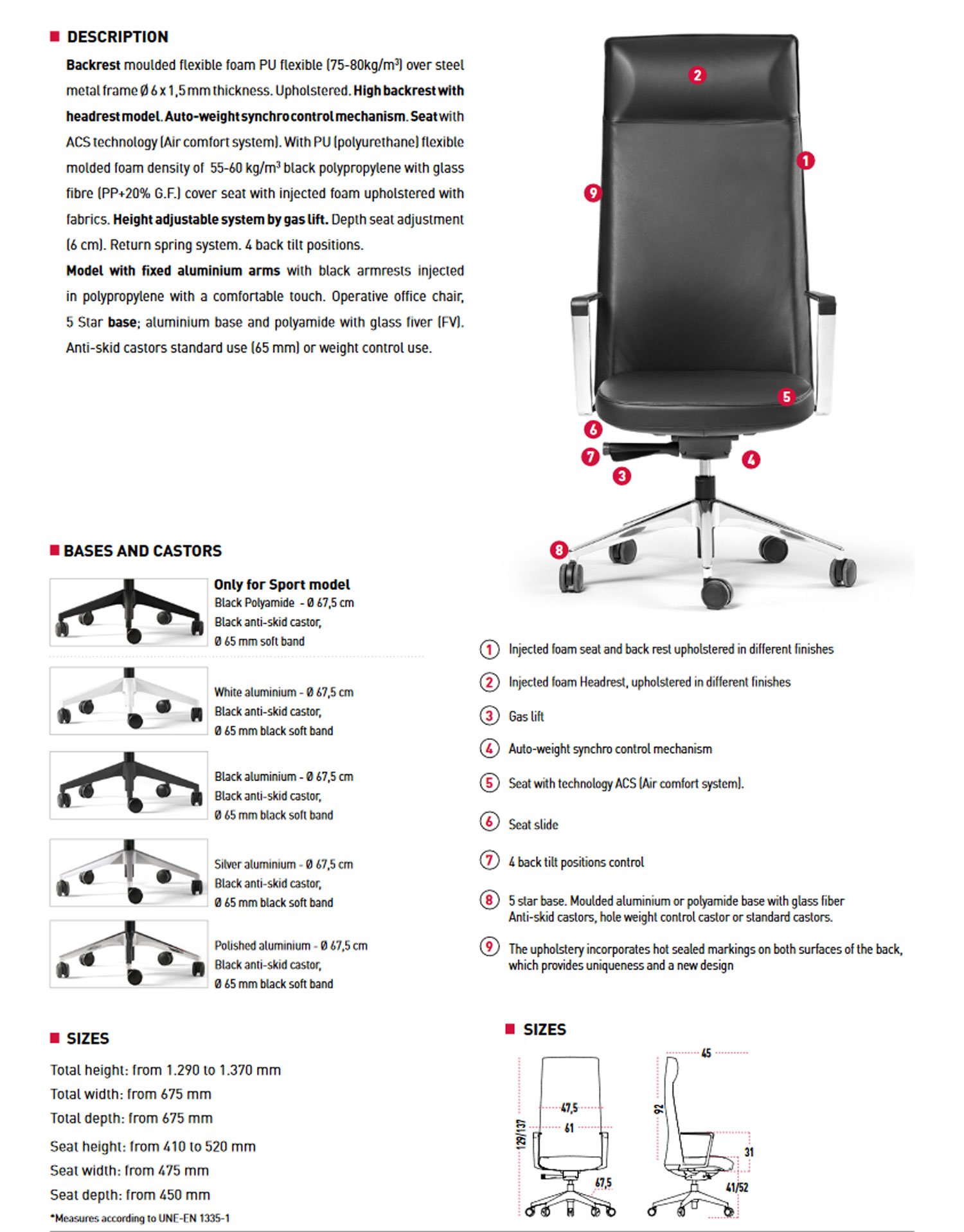 Hergestellt aus innovativen und modernsten Technologiematerialien. "CRON kombiniert die Qualität eines imposanten, aber schlanken Managementstuhls mit einem Aspekt der funktionalen Inspiration, des Komforts, des Lichts und der Dynamik"