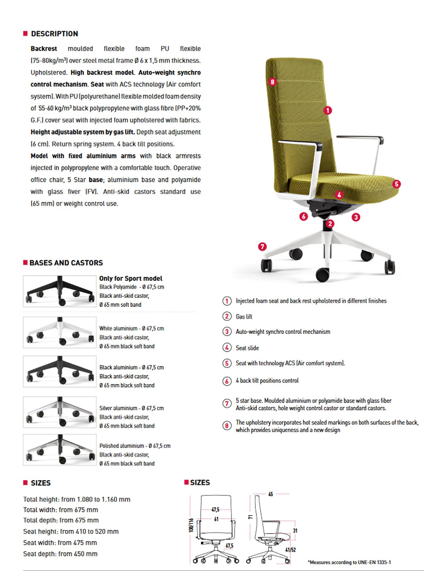 Mit vier Kipppositionen für den Rücken zeichnet sich CRON durch die technischen Spezifikationen eines funktionalen, effektiven und leichten Stuhls aus, der mit hochwertigen Materialien und höchster Ergonomie hergestellt wird.