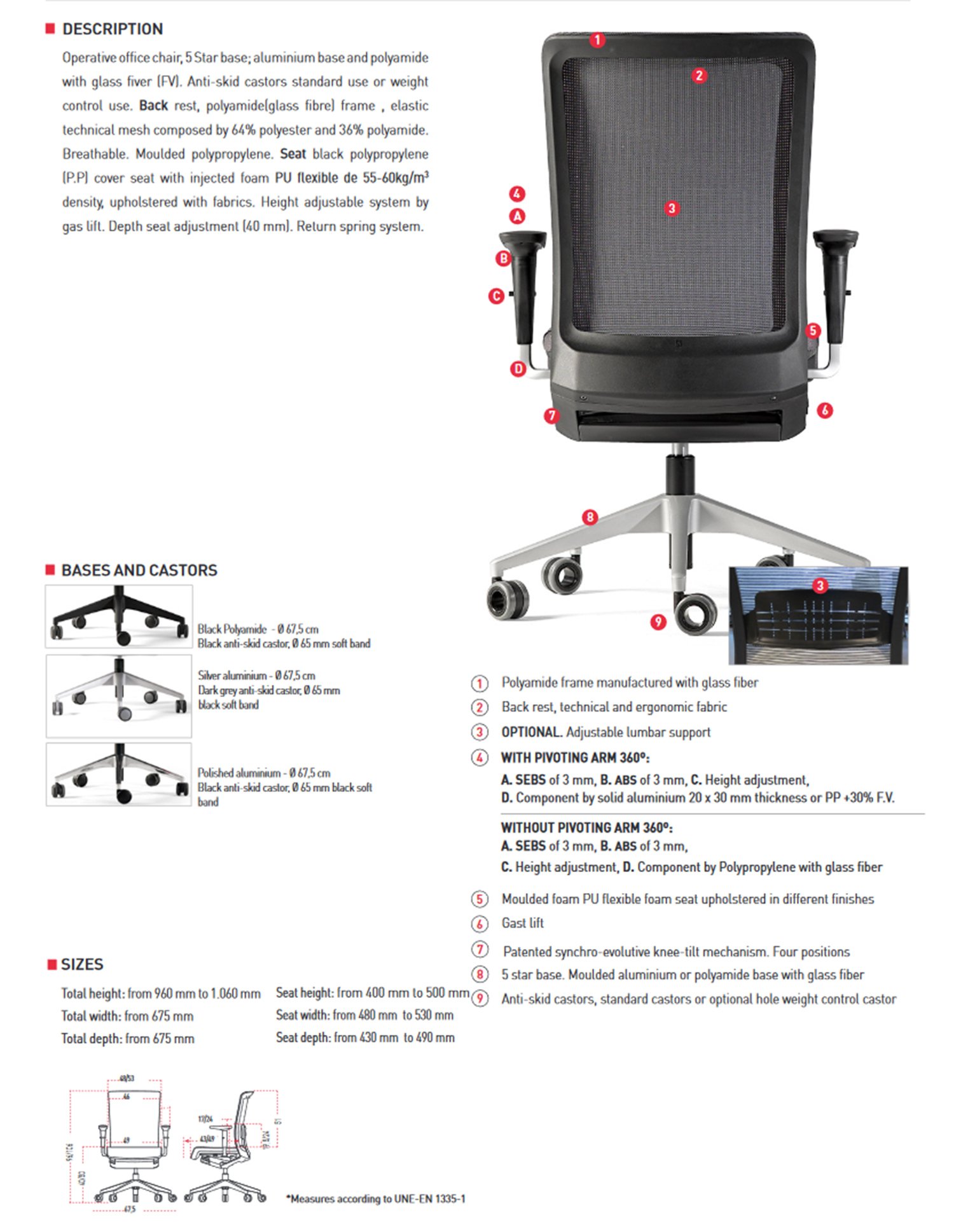 Dieser Bürostuhl reagiert in komfortabler Weise auf alle Mobilitätsbedürfnisse eines jeden Benutzers, passt sich nahtlos an jede Position an und minimiert den Aufwand des Sitzenden, seine Position zu halten oder zu ändern.