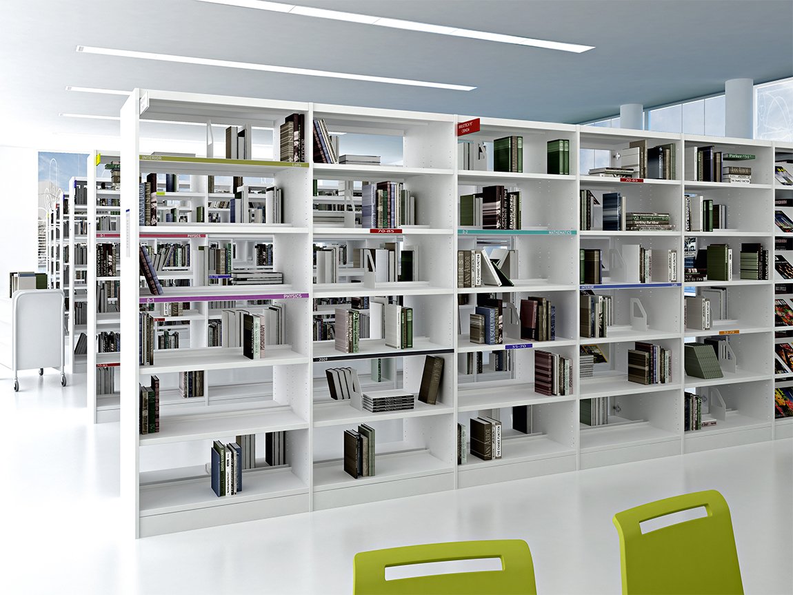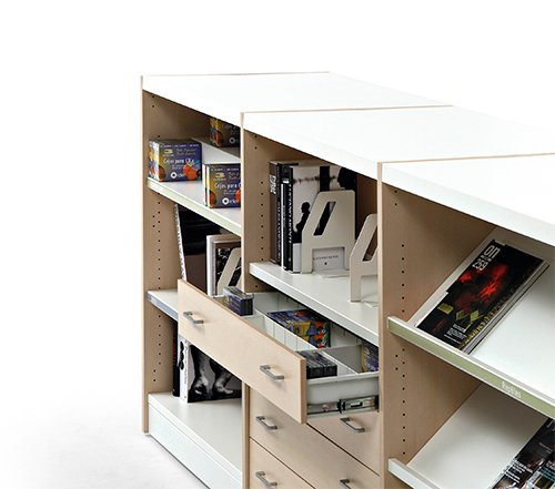 Ein Regalsystem mit doppelwandigen Stahlblechseiten.