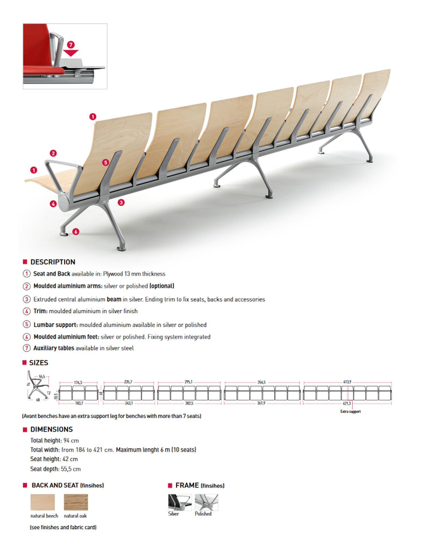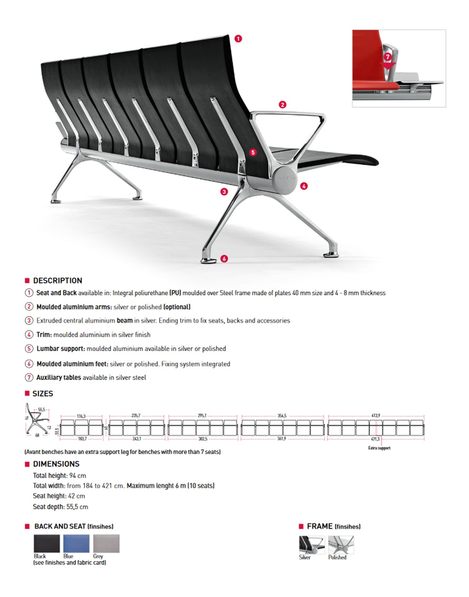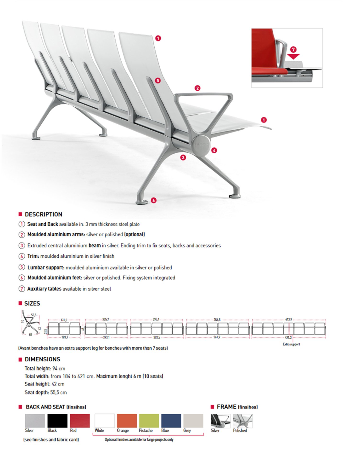 AVANT bietet große Vielseitigkeit in Wartebereichen. Ein großartiges Design ermöglicht die Erstellung mehrerer Konfigurationen, wobei die Bänke an unterschiedliche Verteilungen angepasst werden.
