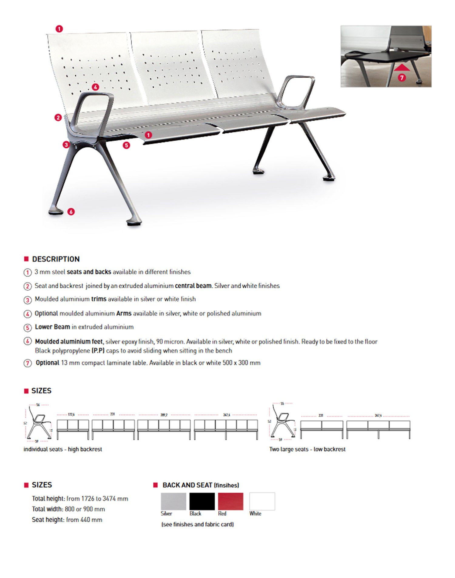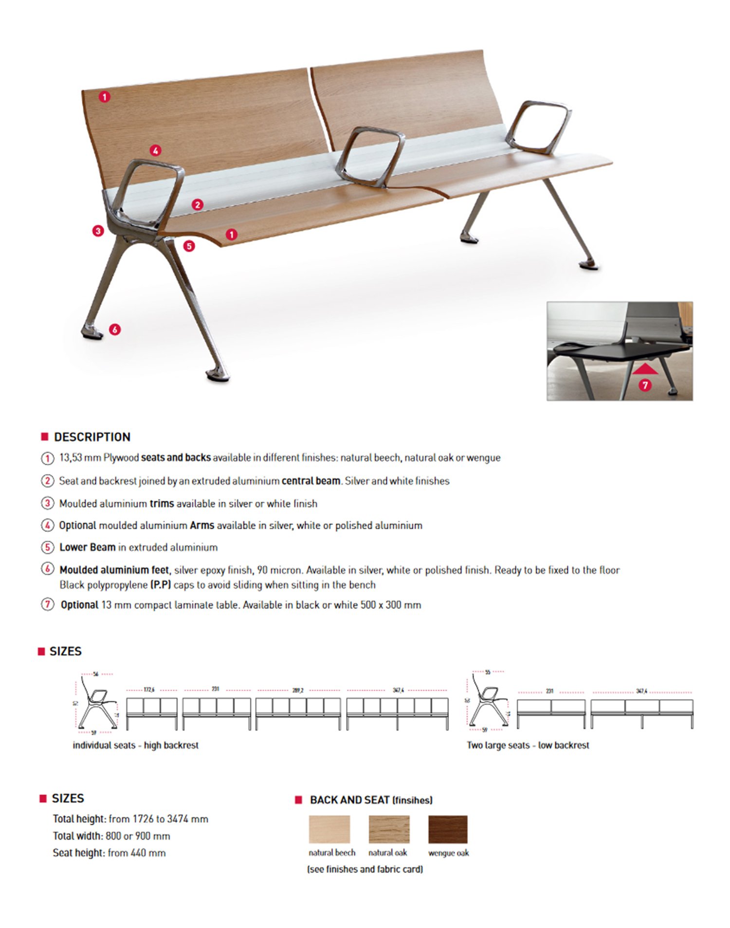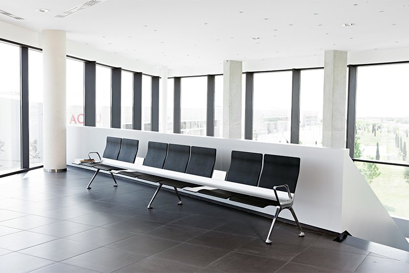 Ein Sitzbanksystem mit großem Potenzial für öffentliche Bereiche, hochwertige Oberflächen, inspiriert von modernster Architektur.