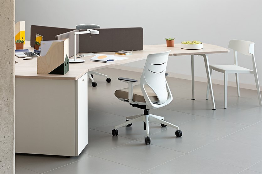 Twist Spine hat sich aus dem traditionellen Büro mit seiner organischen Struktur und einzigartigen Ästhetik entwickelt. Es ermöglicht Ihnen, eine Datei neben sich zu erreichen und ihren individuellen Schreibtisch zu drehen. Es enthält auch einen Kabel-Organizer.