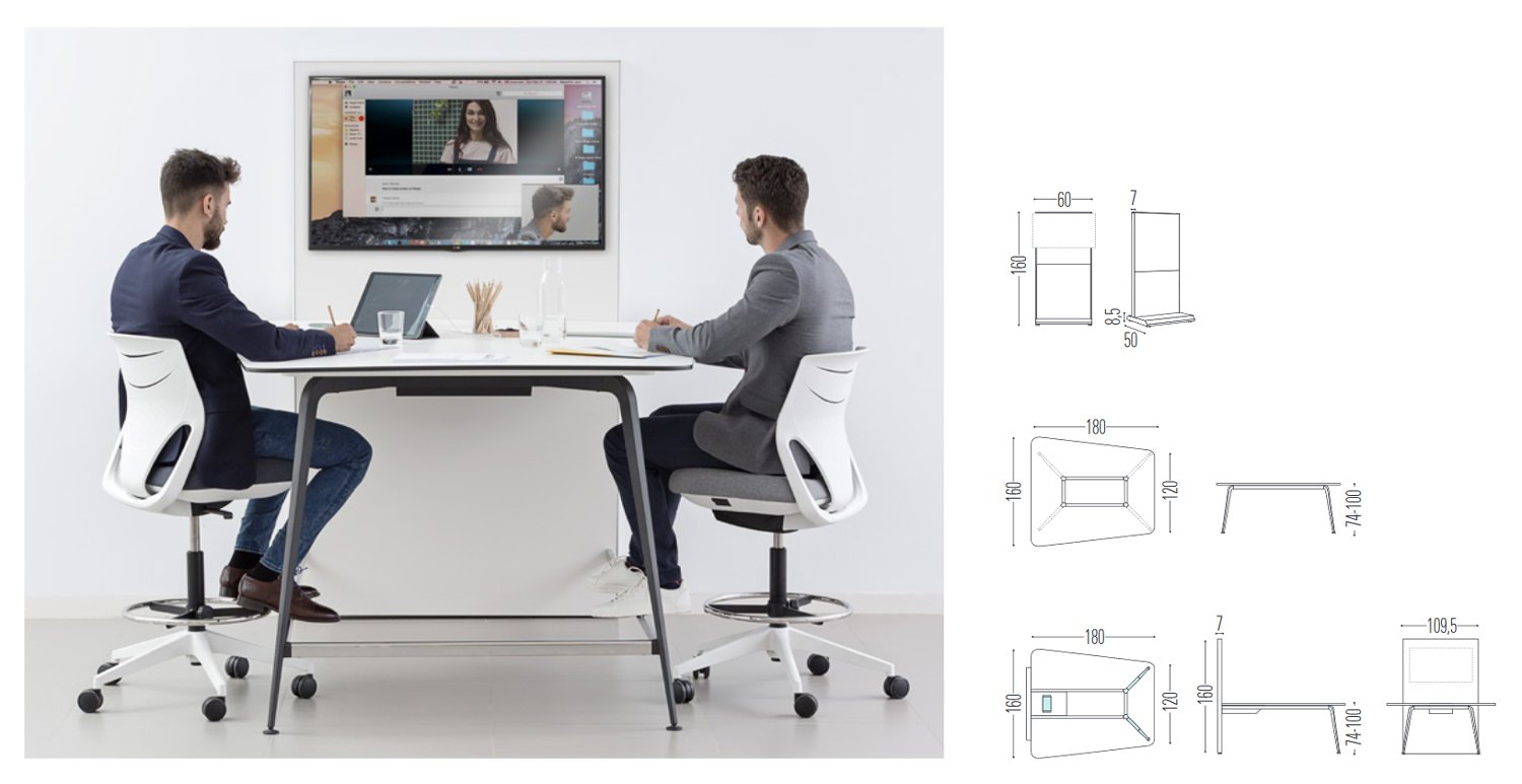 GEN ist das neue Konzept für zukunftsorientierte Büros. Raumoptimierung, Zusammenarbeit und die Nähe des Benutzers sind die Zwecke dieses Produkts. Schreibtische können auch angeschlossen werden, um optisch flüssigere Büros zu erhalten.