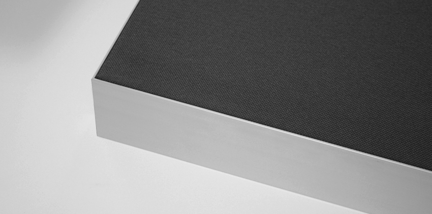 Das Lichtdeckensegel besteht aus einem hochwertigen Aluminiumrahmen Alu-Connect 85-1, dessen Sichtfläche mit weißem Textilgewebe bespannt ist. Da Aluminium weder auf Feuchtigkeit noch auf Temperaturunterschiede reagiert, bleibt der Rahmen verzugsfrei.
