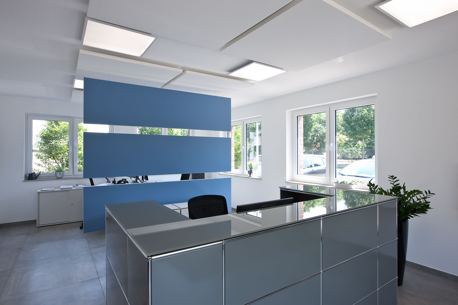 Gerade zur optischen und akustisch wirksamen Trennung von Arbeitsplätzen bzw. Raumgliederung wie beispielsweise in Open Space Büros oder Callcentern und überall dort, wo viel gesprochen und telefoniert wird, sind beidseitig hochschallabsorbierende Akustiklösungen von Vorteil, die darüber hinaus Sichtschutz und Diskretion bieten, ohne den Kommunikationsaustausch und die Teamarbeit zu beeinträchtigen.