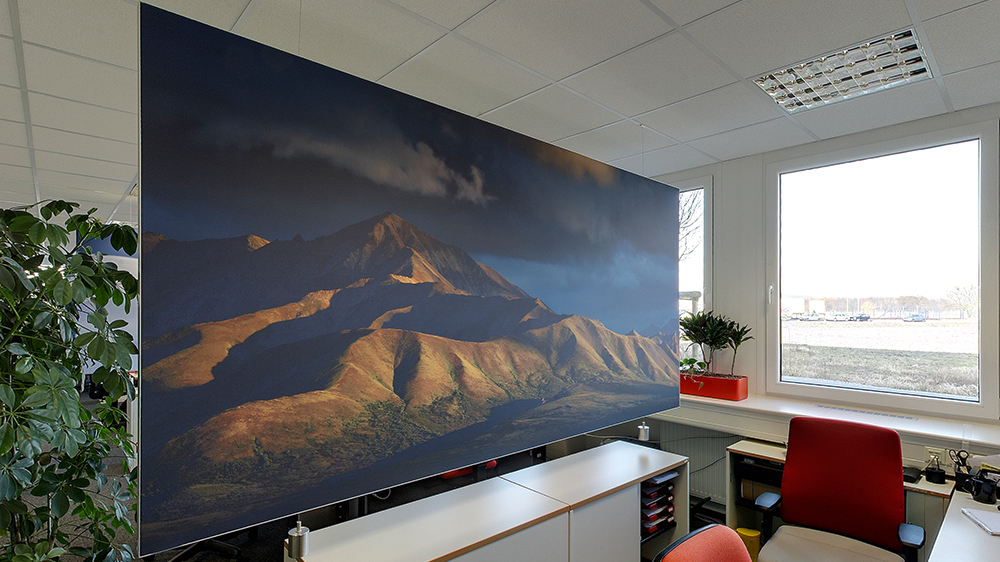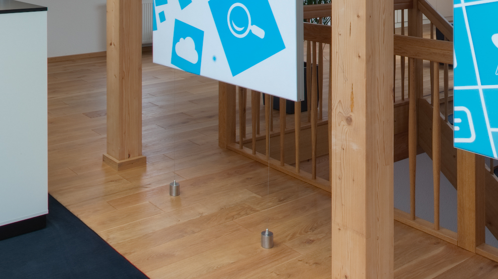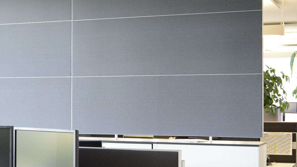 Standfüße oder ein stufenlos höhenverstellbares Seilsystem ermöglichen dabei eine flexible Positionierung bzw. Abhängung des Akustik-Raumteilers: als Gliederung zwischen einzelnen Arbeitsbereichen oder unterschiedlichen Raumzonen.
