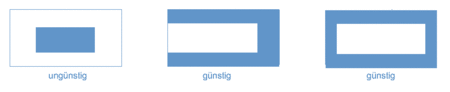 Folgende Abbildung zeigt günstige und weniger günstige Anordnungen horizontaler bzw. vertikaler Schallabsorber in kleinen bis mittelgroßen Räumen.