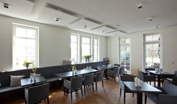 Um für die Gäste und Mitglieder des Golfclubs eine vertraute und entspannte Atmosphäre in geselliger Runde zu schaffen, wurden wir beauftragt, die Raumakustik zu optimieren und dabei das optische Gesamtkonzept zu erhalten. So haben wir in der Gastronomie und im Clubraum Akustik-Deckensegel im Format 1,20 m x 1,20 m und zwischen den Holzbalken hochschallabsorbierende Deckenabsorber im Format 600 mm x 600 mm eingebaut. Zur Bestimmung der Nachhallzeit wurde vorab eine Akustikmessung durchgeführt.