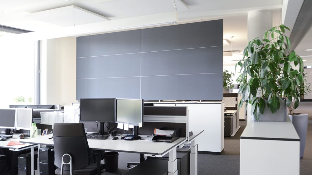 zu verbessern. Aufgrund der Akustikmessung wurden insgesamt 250 großflächige Akustik-Bilder, Akustik-Raumteiler und Akustik-Deckensegel eingebaut.